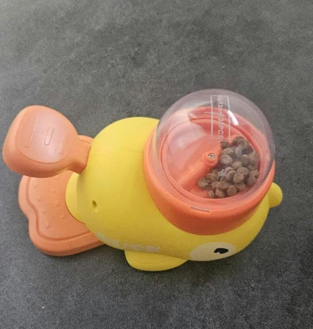 Stimulera din katt med denna godis skjutande leksak. Genom att trycka på knappen på baksidan skjuts det ut godis bitar där din katt får träna sig själv.