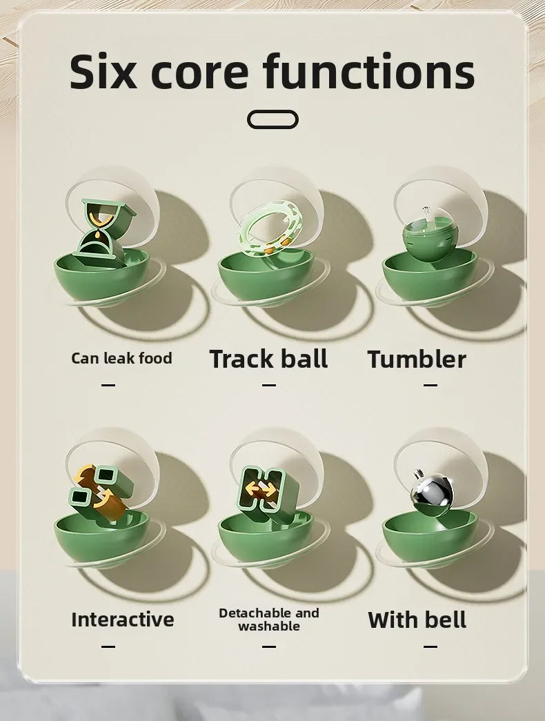 Kattleksak – Tippande hjul med godisläckage och flygande tefat, retleksak för självlek med avtagbart fjäderhuvud